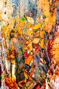Queste foglie sono morte e coperte da un leggero strato di neve, ma i loro colori risaltano così tanto da dar loro nuova vita