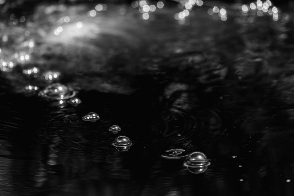 Questa opera fa parte del progetto “Bubbles” che riprende nascita, vita e morte di bolle d’aria che emergono dall’acqua in un ciclo continuo, in sequenze sempre diverse tra loro e che rappresentano la metafora della vita, diversa per ogni singolo essere umano, in una serie di interrelazioni che cambiano nello spazio e nel tempo.