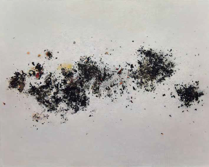 In quest’opera, la ricerca di Luo Zhi Yi si sposta sulla traccia lasciata dai fuochi d’artificio. Cosa resta dopo la festa? I grandi fuochi lasciano dietro di sé ceneri nere e polveri sottili che l’artista dipinge con una maestria iperrealista che toglie il fiato.